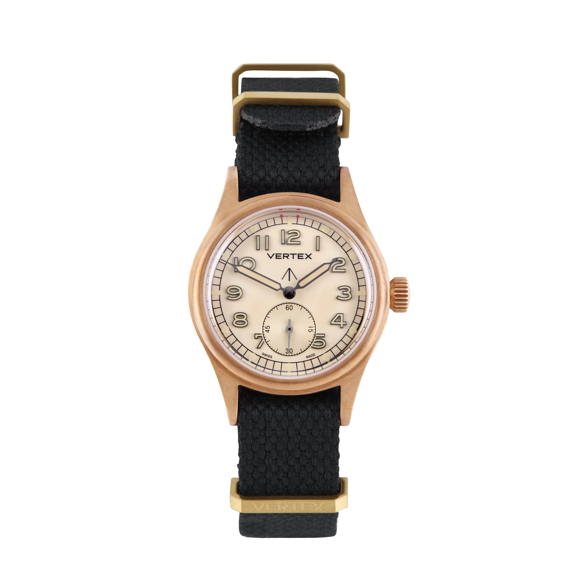 At its heart is a refined sand-coloured dial, designed to evoke the shifting tones of the desert landscape. For the first time on a Vertex watch, the model features filled metal indices, offering enhanced depth, clarity, and durability while maintaining the legibility that defines Vertex military timepieces.