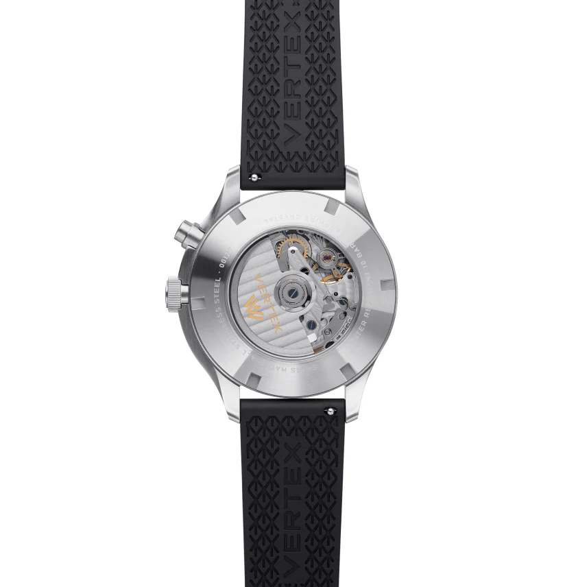 The MP45 is a direct descendant of the watch worn by the WWII soldiers who defused unexploded enemy ordnance in 1945. As such, the mono-pusher embodies the Vertex philosophy: Purity of Purpose.